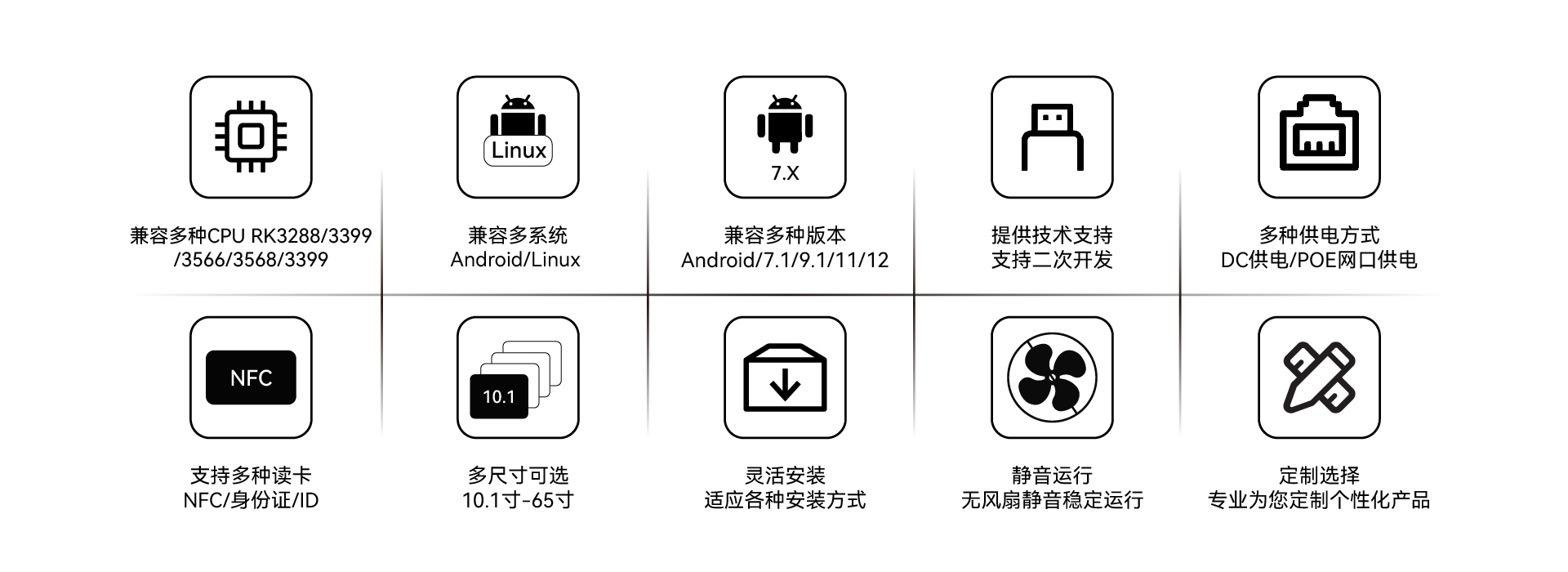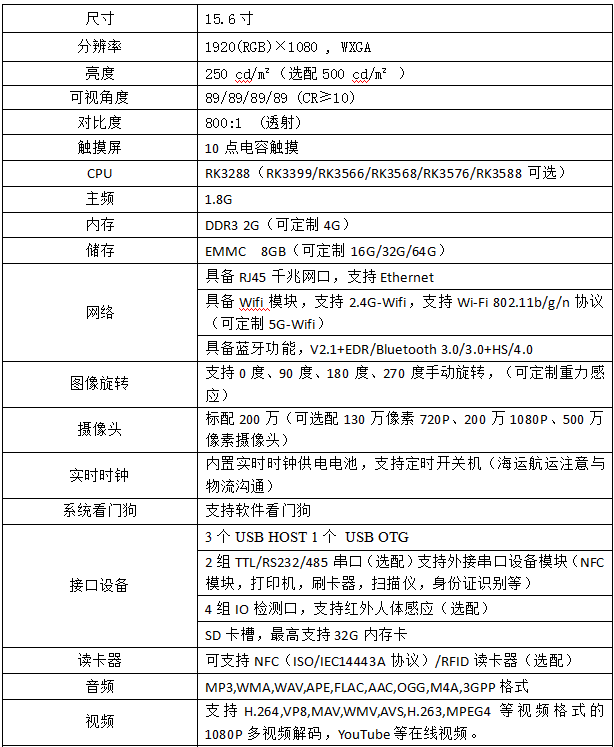 1、专为MES系统研发,传递信息实时追溯 2、支持NFC读写,识别身份权限 3、纯平面板达IP65级防水标准 4、提供SDK包,支持二次开发 5、支持宽压,宽压输入12V-36V 6、提供SDK开发包,应用开发更灵活 7、性能稳定,支持全天运行
