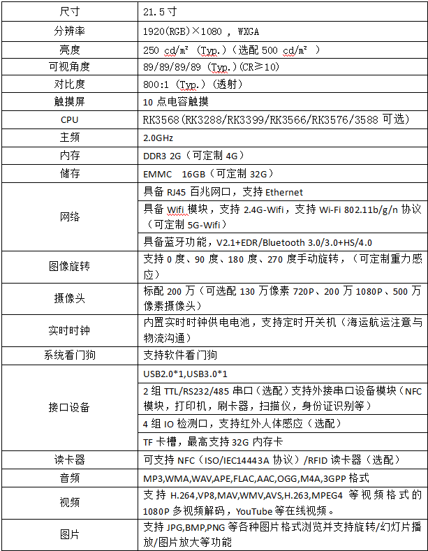 型号:21.5寸商显触控一体机